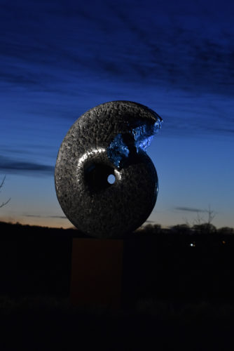 This sculpture is Hamish’s interpretation of a Cretaceous ammonite fossil. The spiral shape of the fossilised shell is horn-like, and the term ammonite refers to the Egyptian god Ammon who wore the coiled horns of a ram.